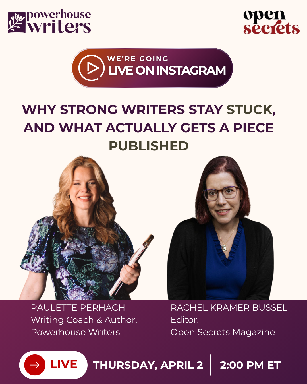 Join me live as I sit down with Rachel Kramer Bussel, editor of Open Secrets Magazine — someone who has seen thousands of essays cross her desk and knows exactly what makes a story rise out of the slush pile.